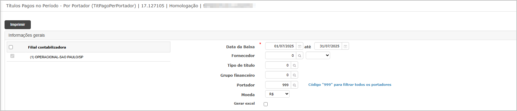 - O título que está no relatório, deve ter as mesmas informações na consulta do título.