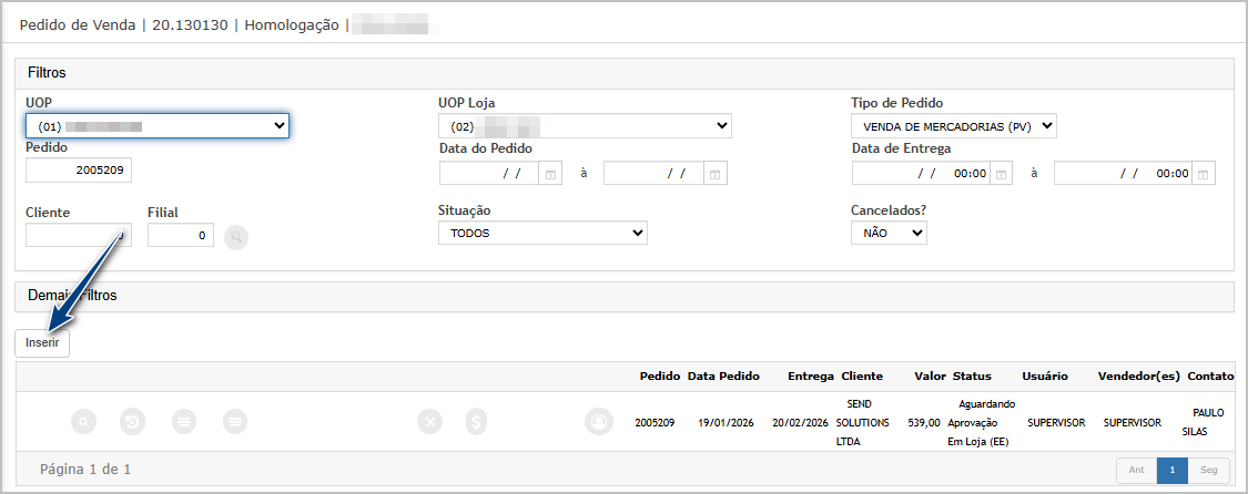 Tela de inclusão de pedido - Passo a passo.