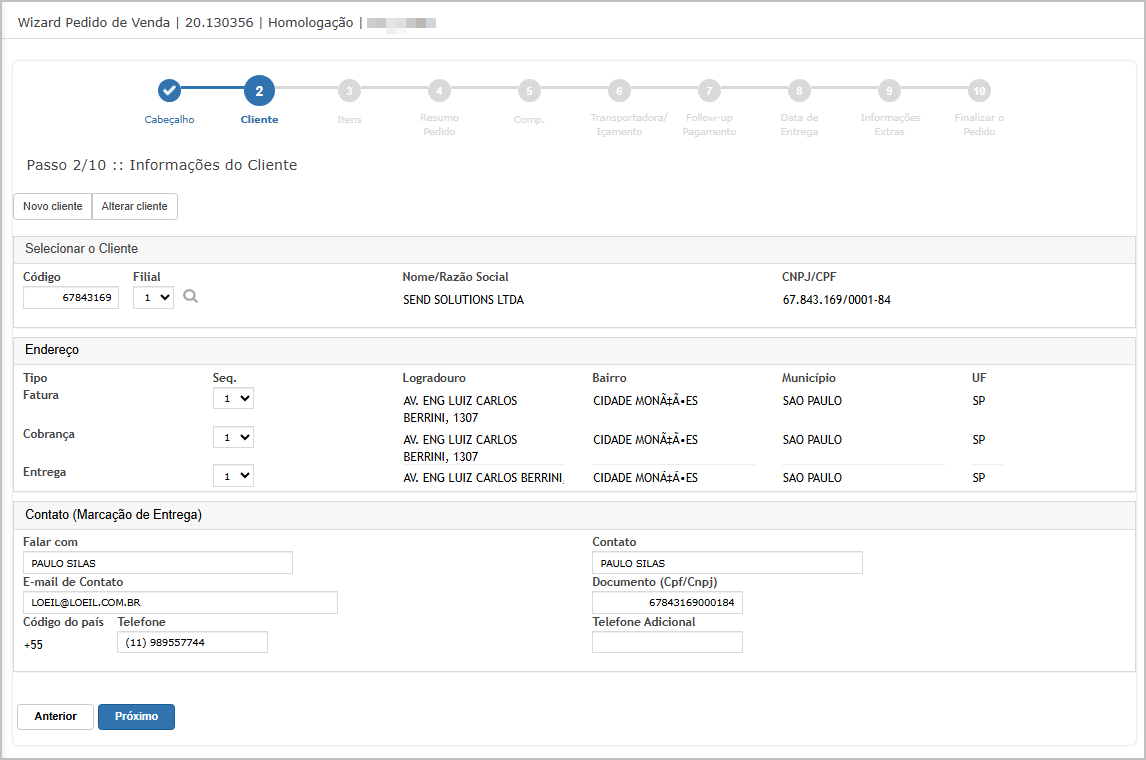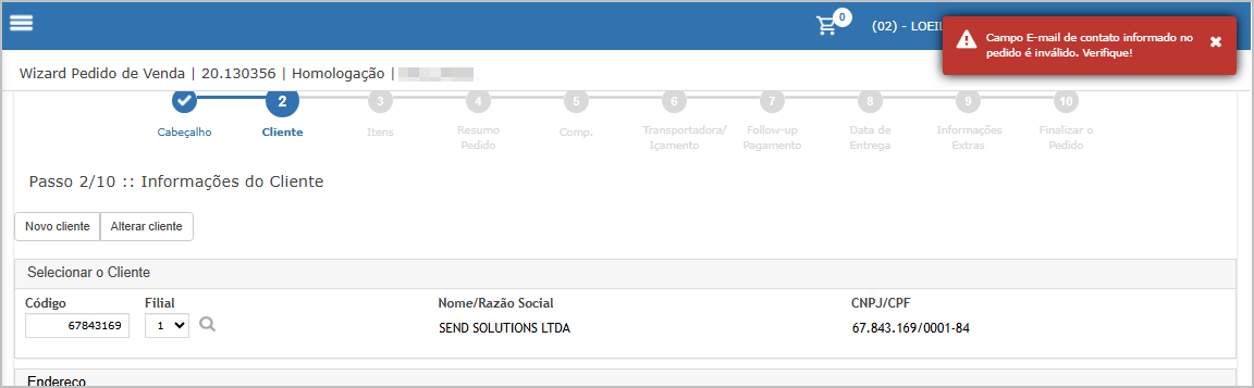 Step 2 - Cliente - Insira o cliente e verifique os dados.