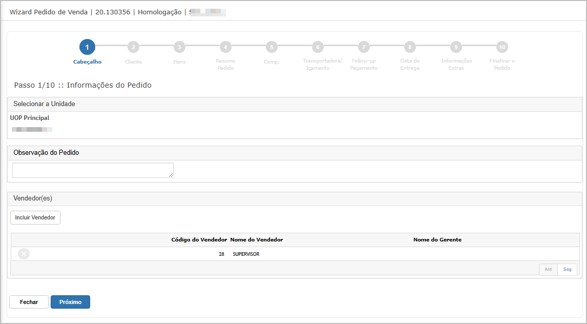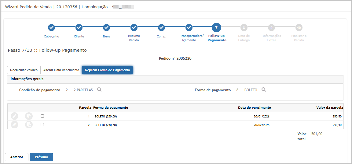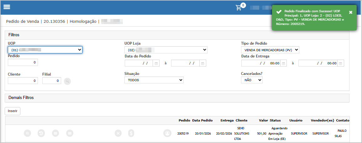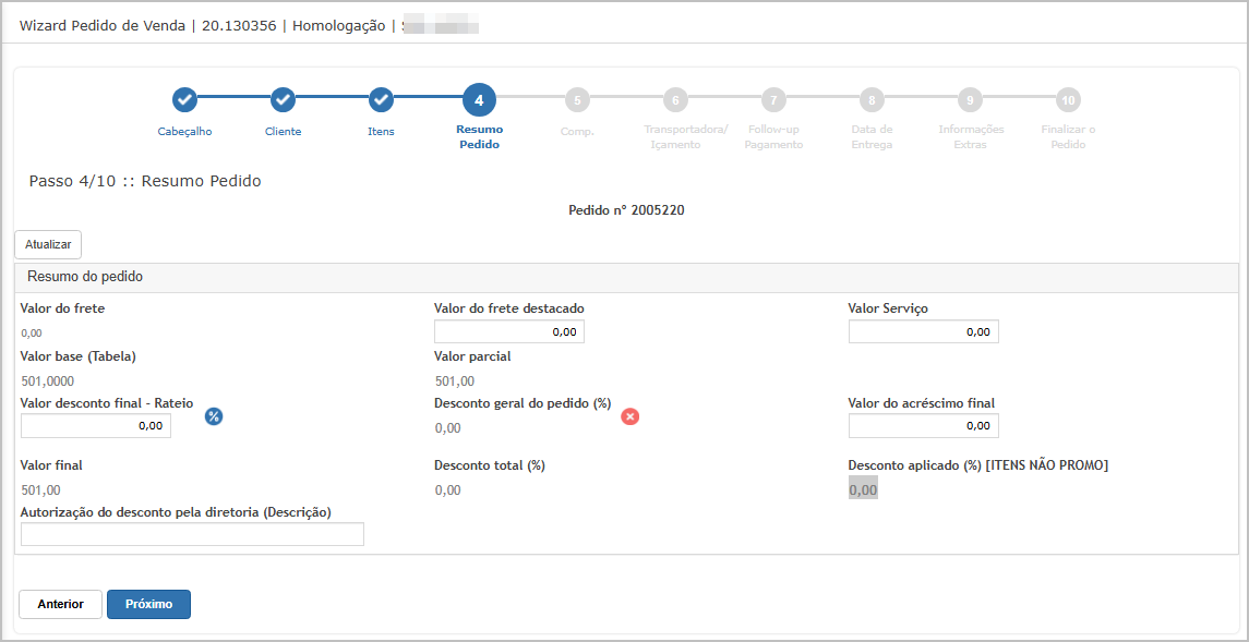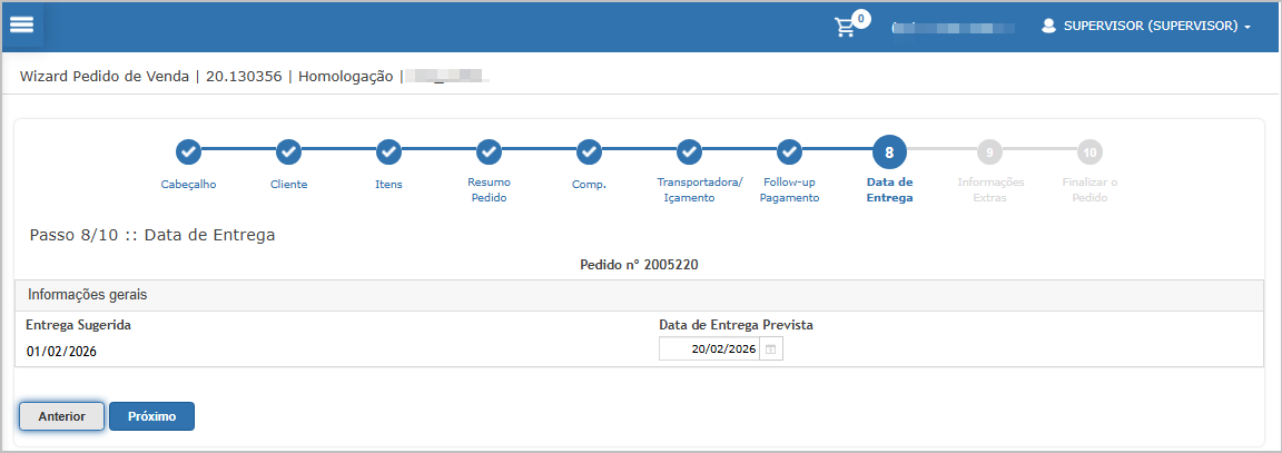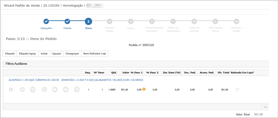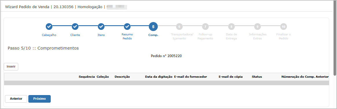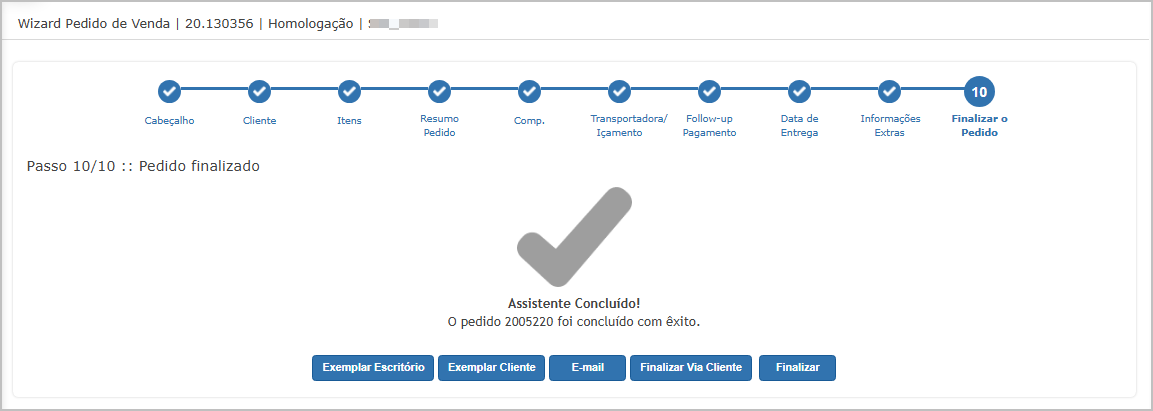 Nesse tipo de lançamento de pedido, as validações são feitas nos steps.