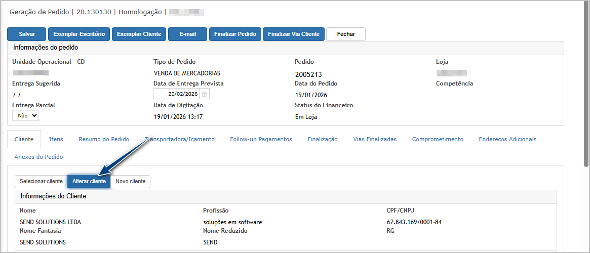 Após inserir os dados, clique no botão Alterar Cliente.