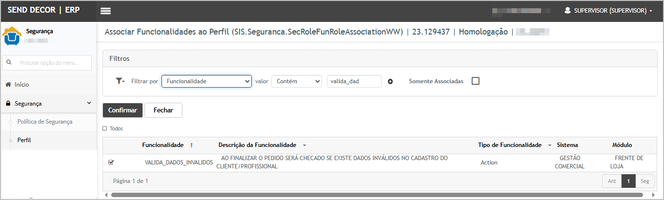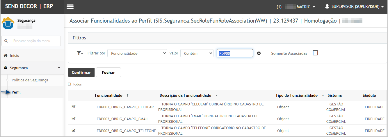 Premissa: As funcionalidades abaixo devem estar ativa.