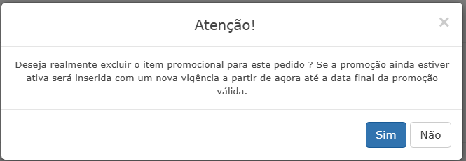 Agora o ícone indicativo de promoção não será apresentado.Regra: O item passou a não ser promocional apenas neste pedido, em um novo pedido ele ainda terá a promoção se estiver ativo e dentro da data de vigência. Lembrando que a data que se compara é a data de inserção do item dentro do pedido.