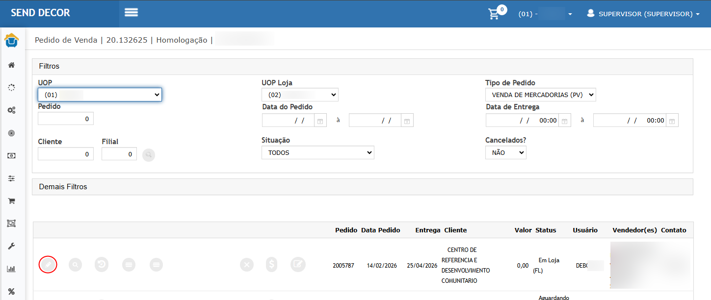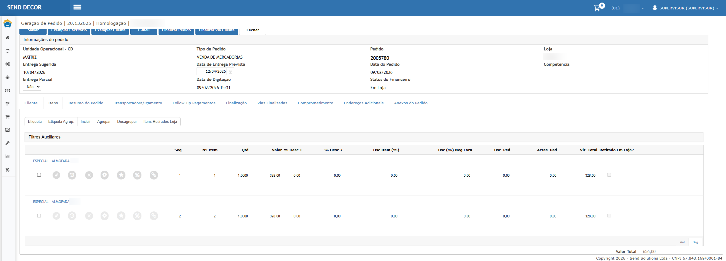 Acessar: Frente de Loja > Pedido > Pedido de Venda