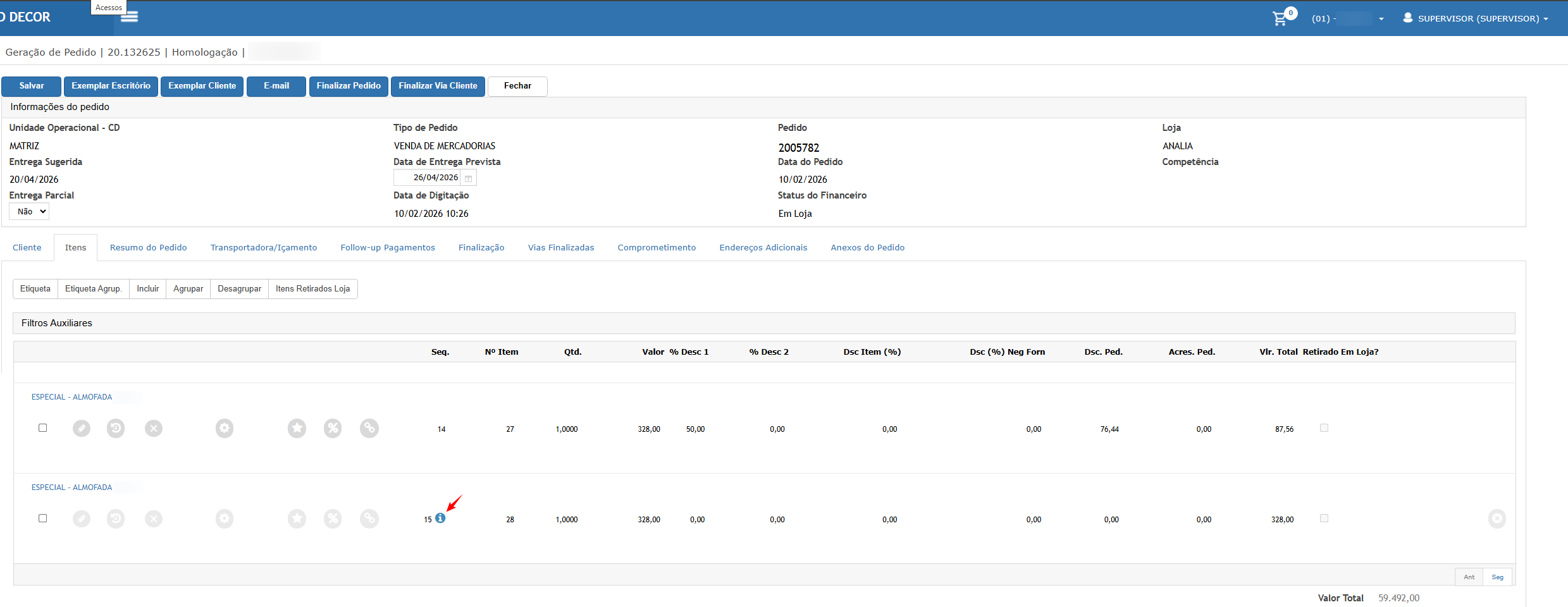 OS 92165 - MELHORIA - FRENTE DE LOJA - BOTÃO PARA CANCELAR UM ITEM PROMO EM UM PEDIDO