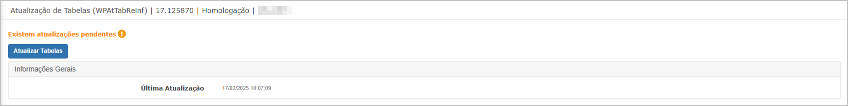 • Quando houver atualizações pendentes, o sistema exibirá o alerta correspondente para facilitar a identificação.