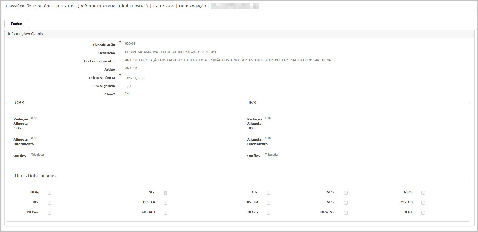 As informações exibidas são atualizadas automaticamente pela rotina de Atualização de Tabelas Básicas Fiscais, assegurando que todas as regras estejam alinhadas à Reforma Tributária.
