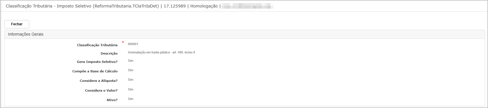 • As classificações exibidas são carregadas automaticamente pela rotina de Atualização de Tabelas Básicas Fiscais, garantindo conformidade com a Reforma Tributária.
