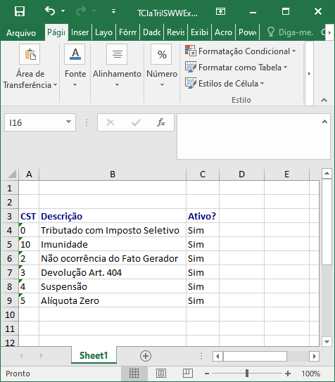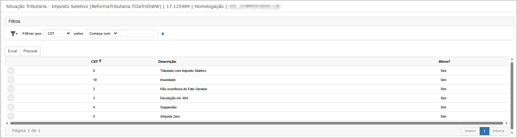 • Utilize os filtros para pesquisar rapidamente pelos códigos de CST ou descrições.