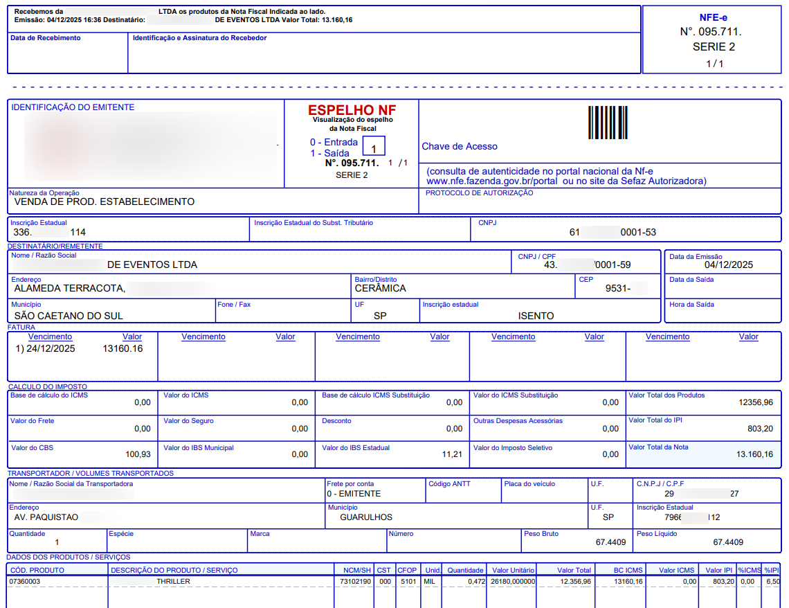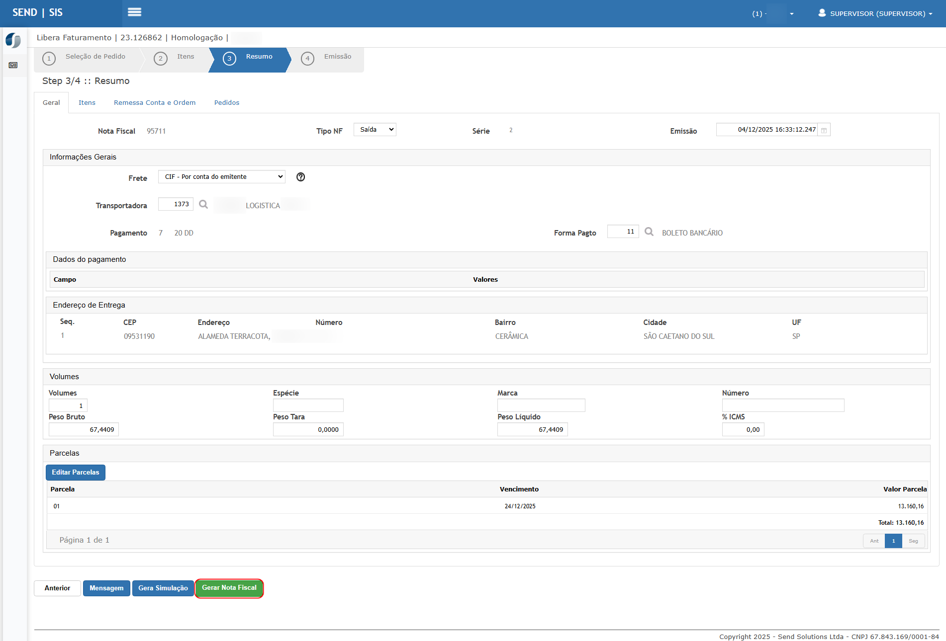 - Em ambiente Homologação, a NF será gerada apenas para testes (sem valor fiscal).
